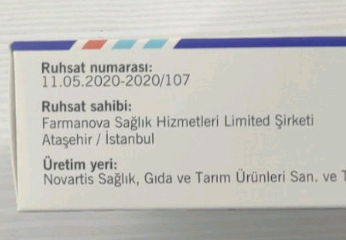 Производитель NOVARTIS Европа,дистрибьютор Farmanova Turkey.