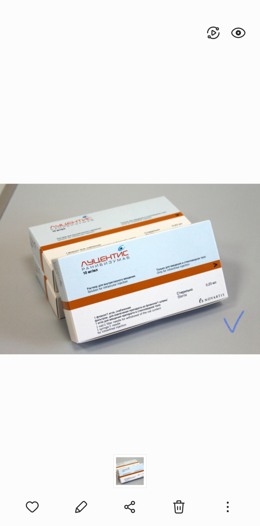 LUCENTIS / ЛУЦЕНТИС 10 MG 1 FLK. (Ranibizumab, Ранибизумаб) NOVARTIS Лечение макулярной деградации сетчатки.Доставка лекарств из Европы соблюдение условий хранения, оплата при получении, заказ по номеру +380996042415 Viber, Whatsapp.